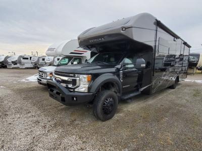 The Accolade XT from Entegra Coach is a Super C diesel motorhome like no other. With a tough exterior appearance and a comfortable interior, you will enjoy hours of fun in this motorhome. The Ford F600 4X4 chassis or Ford F550 4x4 chassis (depending on which model you choose) is ready to go anywhere, and the all-terrain tires with HiSpec matte black aluminum rims enhance the appearance.