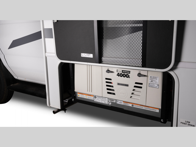 - 210-amp alternator (Ford Chassis); 150-amp alternator (Chevy Chassis)