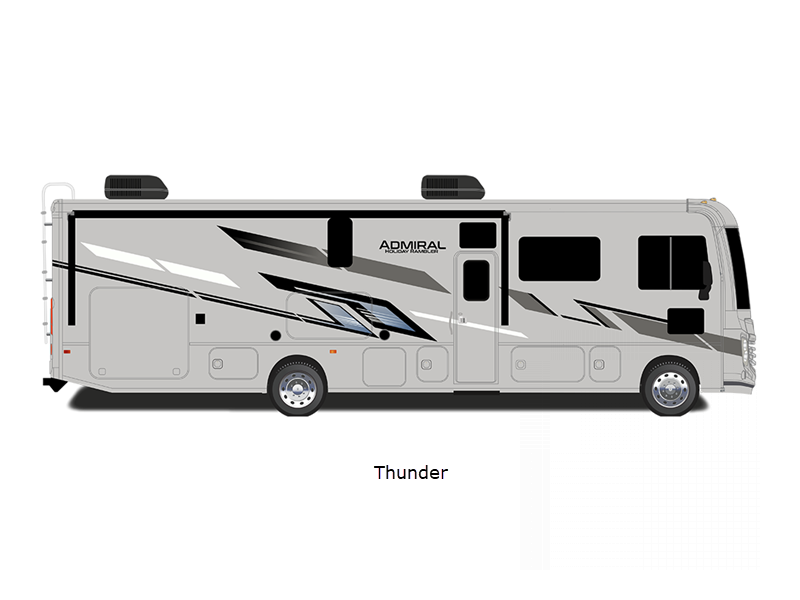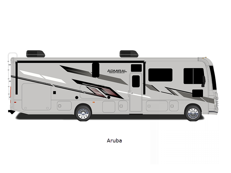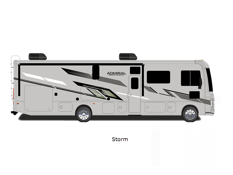 Start your RV lifestyle with an Admiral Class A gas motorhome by Holiday Rambler! Not only are these coaches affordable, but they combine the power and stability you're looking for in a home on wheels!