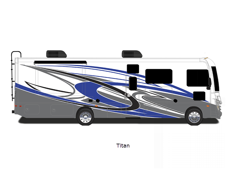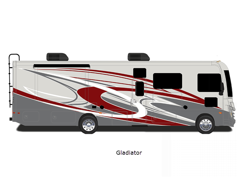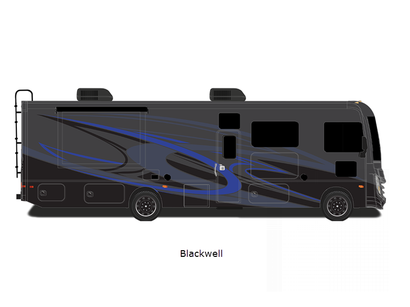 Sleeps 6 Slides 2 Length 29 ft 3 in Ext Width 8 ft 4 in Ext Height 12 ft 4 in Int Height 6 ft 10 in Interior Color Elevate, Sea Glass, Thistle Exterior Color Vinyl Graphics; Aruba, Storm, Thunder. Full Body Paint; Blackwell, Gladiator, Titan Hitch Weight 8000 lbs GVWR 18000 lbs Fresh Water Capacity 50 gals Grey Water Capacity 37 gals Black Water Capacity 37 gals Fuel Type Gas Engine Ford 7.3L V8 Chassis Ford F-53 Horsepower 335 hp Fuel Capacity 80 gals Wheelbase 190 in Number Of Bunks 1 Available Beds King Torque 468 ft-lb Refrigerator Type Residential Style Cooktop Burners 3 Shower Size 34" x 22" Number of Awnings 1 Axle Weight Front 7000 lbs Axle Weight Rear 12000 lbs Basement Storage 70 cu. ft. TV Info LR LED TV, BR LED TV, Exterior 50" TV Awning Info 20' Gross Combined Weight 23000 lbs Shower Type Standard Electrical Service 50 amp Similar Floorplans